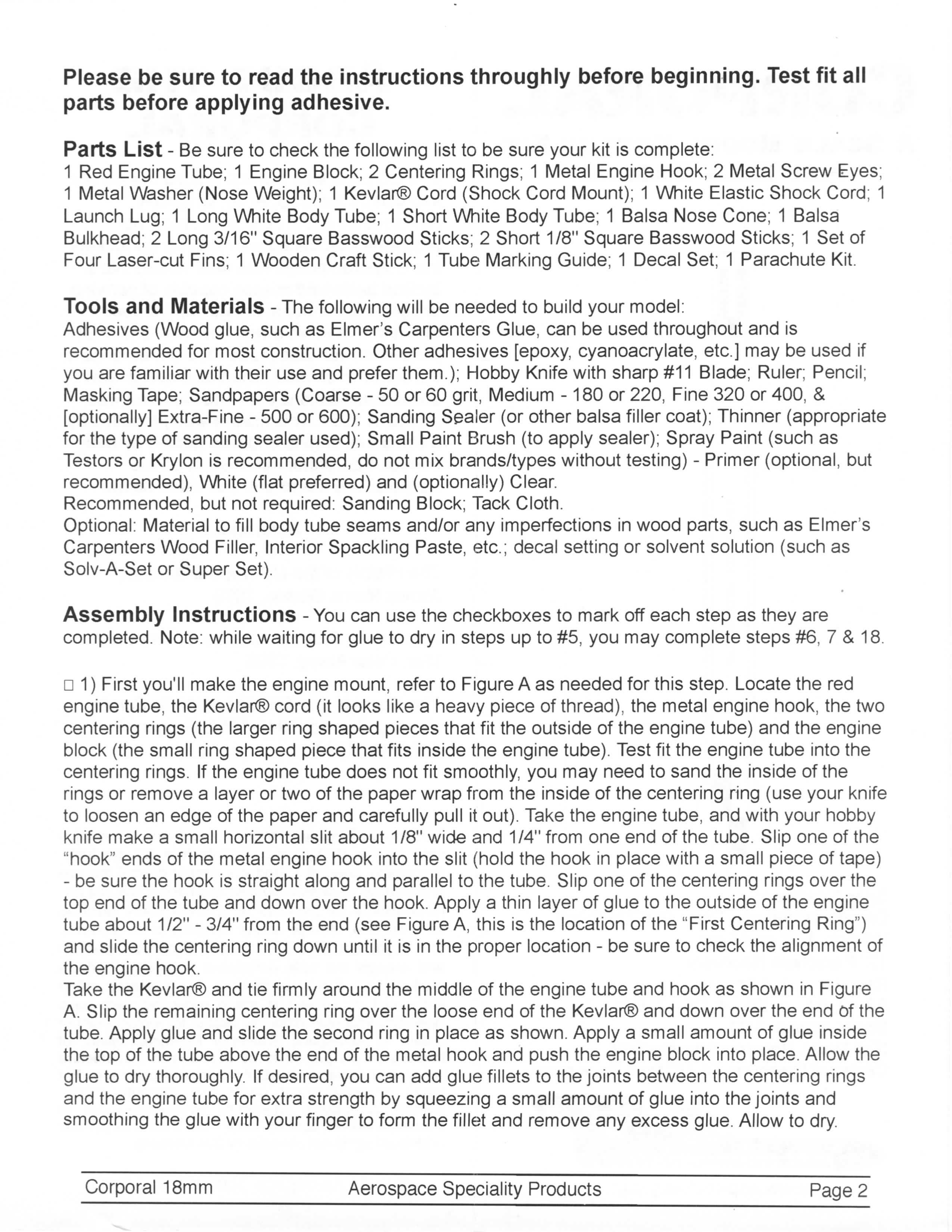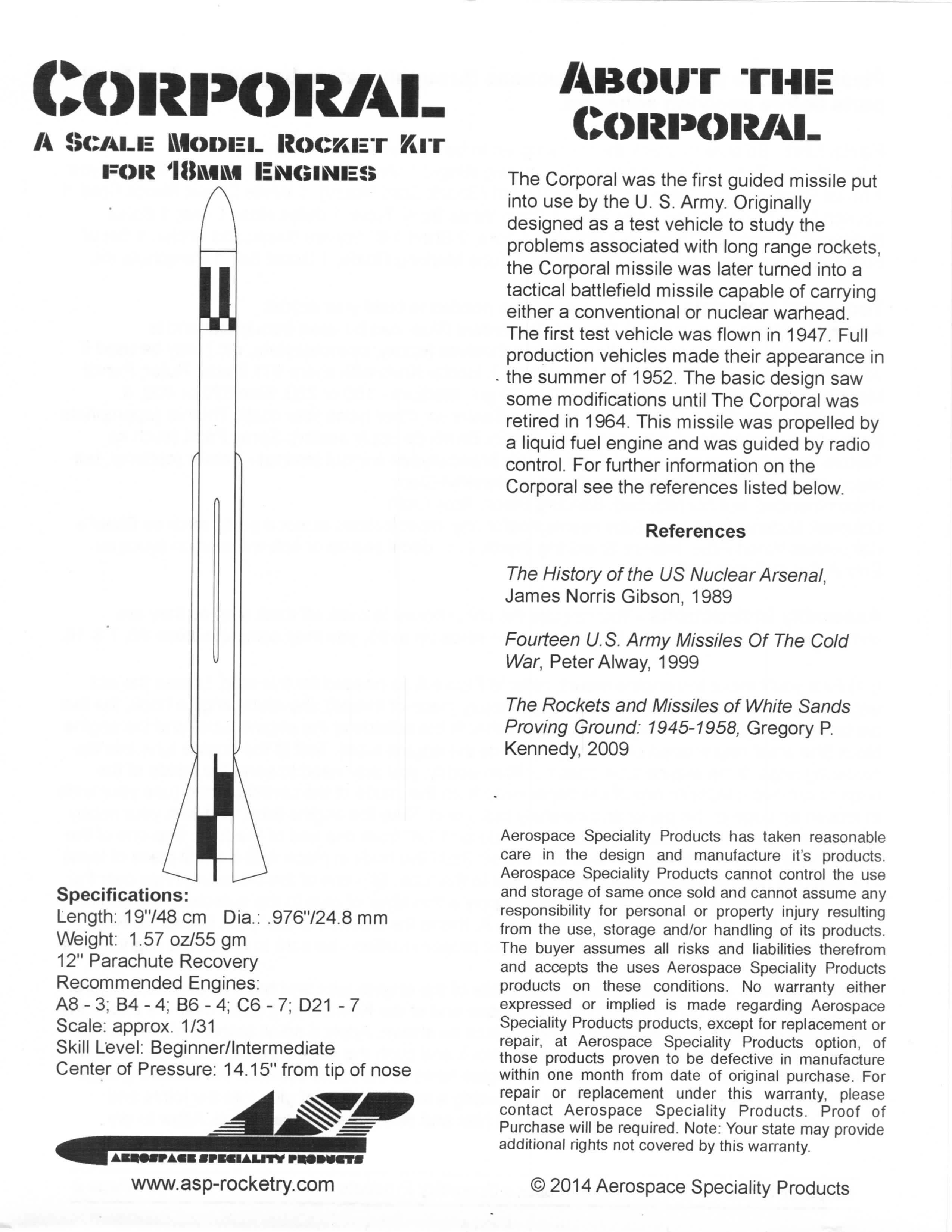 Aerospace Speciality Products Rocket Kit #KCOR-18