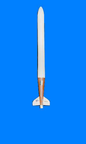 Another favorite method used to create airframes is via white vellum drafting paper. Each section of the model is made by taping or gluing sheet vellum together to produce a cylinder or conical section. The sections are then connected using some sort of internal coupler. These tubes are easily made in a few minutes and can be made to be very light. Also, airframes made of vellum can easily be repaired since each section can be made to be removable. Some have used, with great success, both vellum and fiberglass construction to create a composite airframe. See the photo of the white and orange rocket.